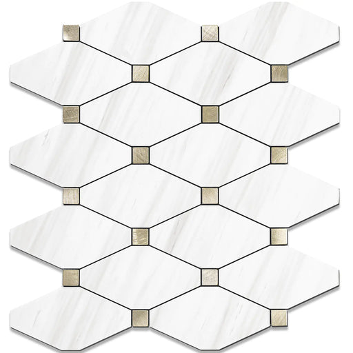 About Hexagon Backsplash:Add a touch of playful elegance to your space with our Hexagon Faux Stone Mixed Metal tile. The marble and metal combo creates a unique, eye-catching design that's...